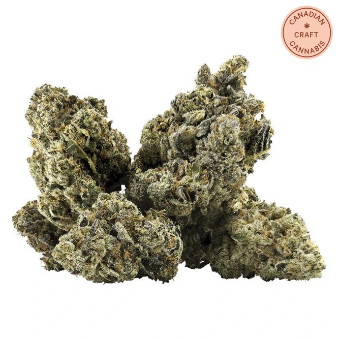 Galactica OG is a rare indica-dominant hybrid grown in the Shuswap region of BC and created by crossing Jedi Kush x Saturn OG. The surprisingly pungent nose is dominated by skunk and fuel with a sweet earth finish. The flowers are round and emerald green with deep purple undertones and bright yellow orange hairs and a frosty coating of amber trichomes. Highly potent, this offering is aptly named Galactica, a beautiful BC grown Kush offering that connoisseurs will love.