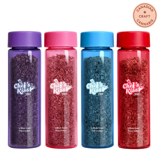 From the brand that brought you Fun Trip, it's time to experience the Chef's Kiss. A limited edition variety boxed set of four milled flower jars packed with precisely curated, small batch handcrafted BC whole flower grown by the Avant/BLKMKT team. Coarsely ground and housed in glass jars with perforated tops to allow you to create your own custom blends by sprinkling from each jar directly into your papers. A little of this, a little of that. Yes, chef!
